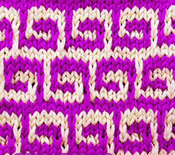 R19 | With B | K3, * SL1, K5 * | rep from * to last 5 sts, SL1, K4 |