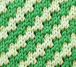 R7 | With A | K1, * SL2, K4 * | rep from * to last 3 sts, SL2, K1 |