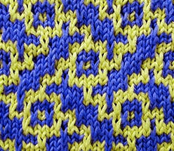 R23 | With A | K1, * K2, SL1, K1, SL1, K5, SL1, K1 * | rep from * to last 2 sts, K2 |