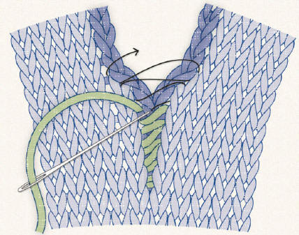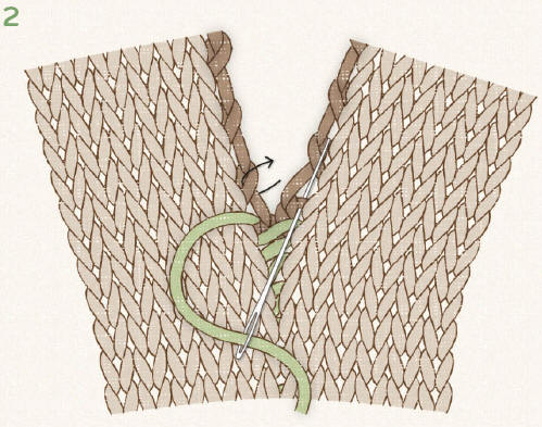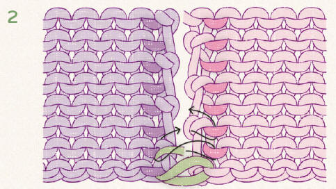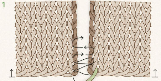 Pick up 1 row at a time, 1 half stitch in from each edge These seams are less bulky than working a full stitch in from the edge, so they are suitable for thick yarn. |