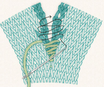 For areas with decreases, insert the needle at a slant and make staggered half stitches. |
