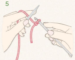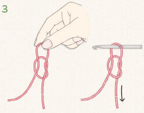 Holding the crochet hook in your right hand, insert it through the center of the loop and tighten the loop. |