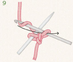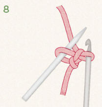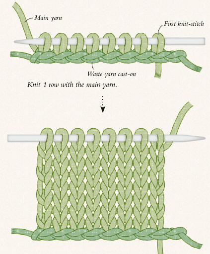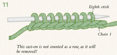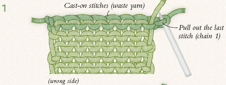 PROVISIONAL CROCHET CAST-ON Work Steps 1 to 9 on facing page (using waste yarn). |