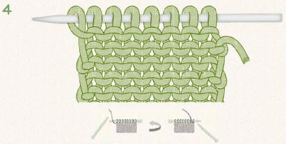 After knitting 8 rows of stockinette stitch, right-side facing. |