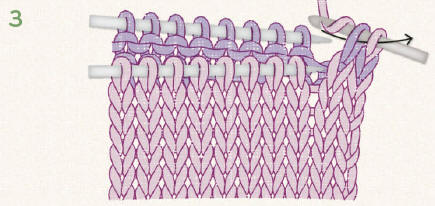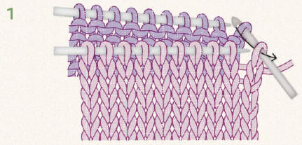 Inserting the hook from the front into the first 2 stitches, pull the back stitch through the front stitch (1 loop on the hook). |