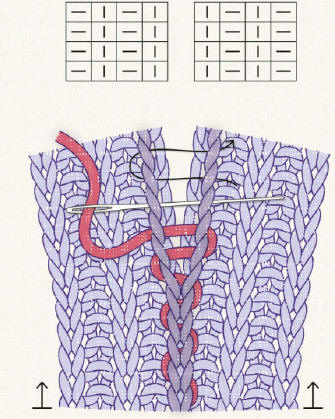 Take out the needle at a straight angle 2 rows ahead. Go back 1 row, and ahead 2 rows, as shown by the arrows. |