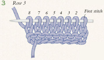 For a fabric that looks like alternating rows of knit and purl stitches, knit every row. Both sides look the same. Because the edges of the fabric don’t roll up, it’s suitable for edgework, scarves, necklines, etc.