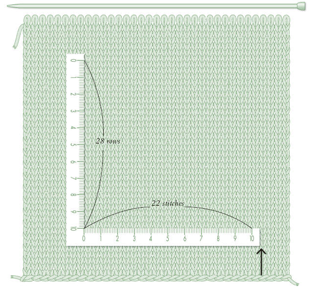 Before you begin your project, knit a gauge swatch (in the pattern to be used) about 6 to 8 in/15 to 20 cm square, using the needle and yarn sizes noted in the instructions. After working the gauge swatch, block it and place it on a flat surface, count the number of stitches and the number of rows over 4 in/10 cm of the center where the stitches are stable.