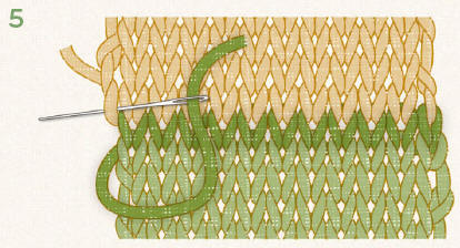 Continue across as shown, referring to the instructions for both sides with live stitches, if needed. Finish as step 5 above. |