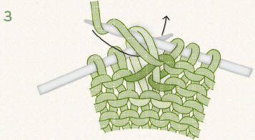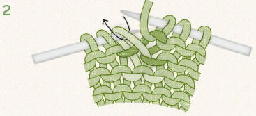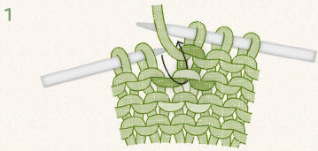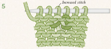 Purl the stitch above the place where the increase is desired. Insert the left-hand needle into the stitch 1 row below that same stitch. |