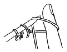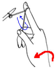 Turn inside your hand and hook the yarn with the left needle as the illustration. |