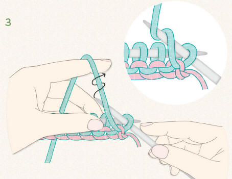 As you pull the loop through, drop the stitch from the left-hand needle. |