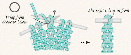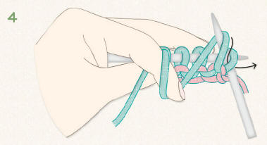 Wrap the yarn over the right-hand needle as shown by the arrows (Continental method in Long-tail cast-on). |