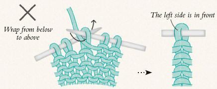 a mistake in wrapping the yarn O = correct; X = incorrect |