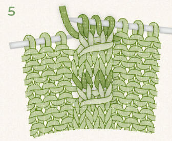 The right-slant faux cable is complete. |