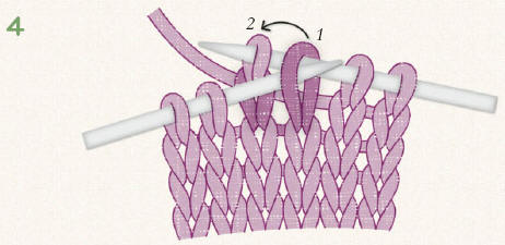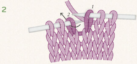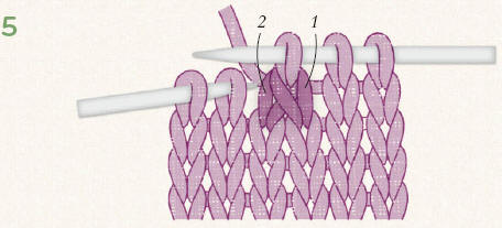 Insert the right-hand needle into the next stitch knitwise (as if to knit) and slip it to the right-hand needle. |