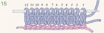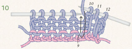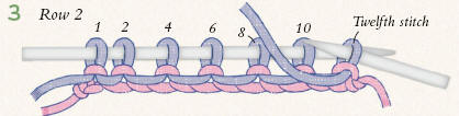 Pick up and knit the next purl bump from Row 1, as in step 8. |