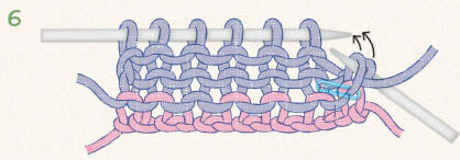 Slip the 2 stitches from step 5 back to the left-hand needle. |