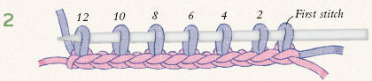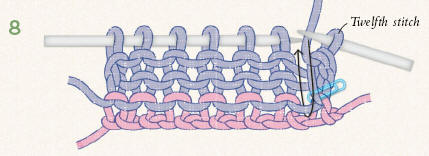 Continue as shown and pick up the second stitch from the edge, then every other stitch across. |