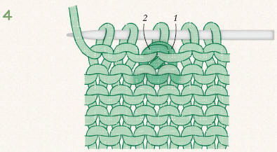 With right-side facing, the top stitch slants to the right; 1 stitch is decreased. |