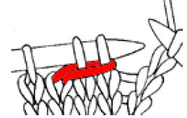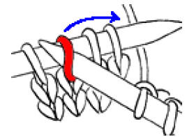 Insert the right needle into the stitch which to go over. And move the stitch like the blue arrow. |