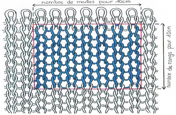En terme technique, on appelle échantillon le nombre de mailles et de rangs contenus dans un carré de 10 cm de côté.