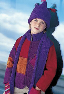 A 106-118 cm de haut. de jersey endr. Clématite, tric. 2 rgs point mousse Rouge en répart. 13 augm. au 1er rg.