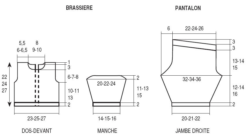 5 boutons pressions pour la brassière, du lastex pour le pantalon.