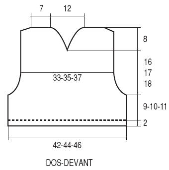 A 11-12-13 cm (34-38-40 rgs) de haut. tot., dim. de ch. côté à 1 m. du bord 5 fois 1 m. tous les 2 rgs, 5 fois 1 m. tous les 4 rgs.