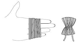 Enrouler A autour de 4 doigts, approx 40 (50-60) fois.