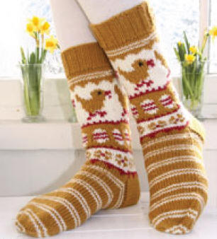 Se tricotent en rond, de haut en bas. Monter 52-56-56-64 m avec les aiguilles doubles pointes 3 et le fil moutarde foncé.