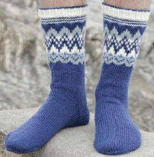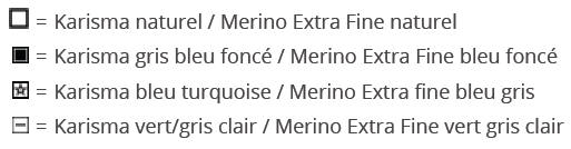Monter 63-63-66-66 m avec les aiguilles doubles pointes 2,5 en Karisma gris bleu foncé ou Merino Extra Fine bleu foncé.