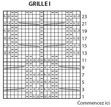 Motif de torsades (trav sur 21 m). (Voir la grille I).