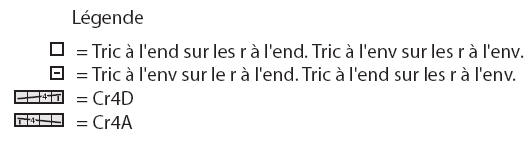 3e r: Trav en motif sur 10 m. Aug 1. 2 end. Aug 1. Tric à l’end jsq la fin du r.