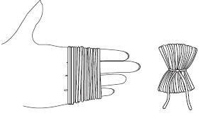 Enrouler 2 brins de fil autour de 4 doigts, approx 60 fois.
