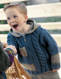 Cont. comme suit aig. n° 5,5 : 10-11- 12-13 m. jersey endr., 18 m. torsade en répart. 3 augm. au 1er rg, 10-11- 12-13 m. jersey endr. (= 38-40-42- 44 m.).
