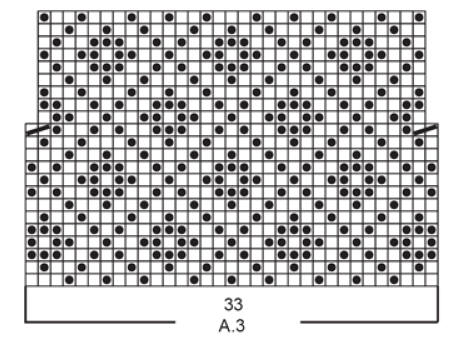 Tricoter ensuite A.1 (= 12 m) sur toutes les mailles. PENSER À BIEN CONSERVER LA MÊME TENSION QUE POUR L'ÉCHANTILLON!