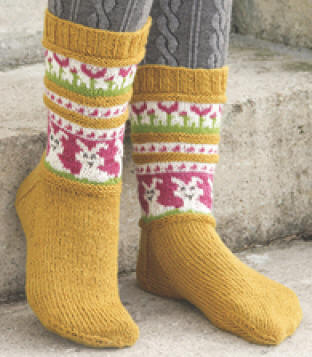 Se tricotent en rond sur les aiguilles doubles pointes.