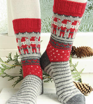 Broder 2 traits verticaux en gris foncé pour les yeux de chaque gnome du jacquard.