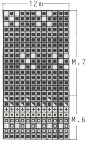 Le diagramme montre le motif sur l'end et se tricote en jersey.