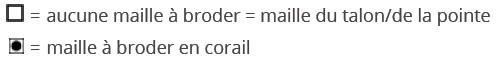 le marqueur du talon est entre les 2 m centrales, compter 6 m directement au-dessus du marqueur, et broder dans un des brins de la maille de chaque côté du marqueur.