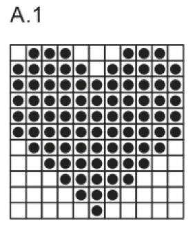 Broder 1 coeur au point de mailles en suivant le diagramme A.1, dans le sens opposé à celui du tricot ainsi: