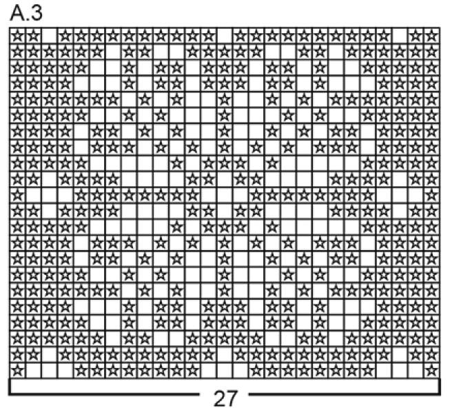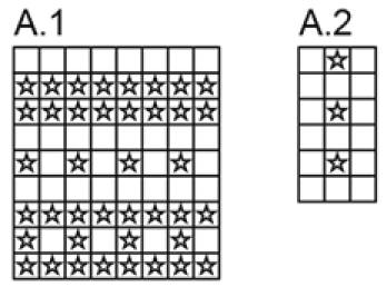 Quand A.1 a été tricoté 1 fois en hauteur, l'ouvrage mesure environ 5-6-6 cm.
