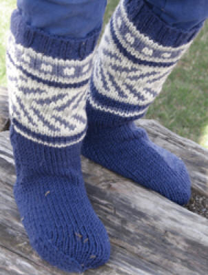 Continuer avec les aiguilles doubles pointes 3,5 en jacquard en suivant le