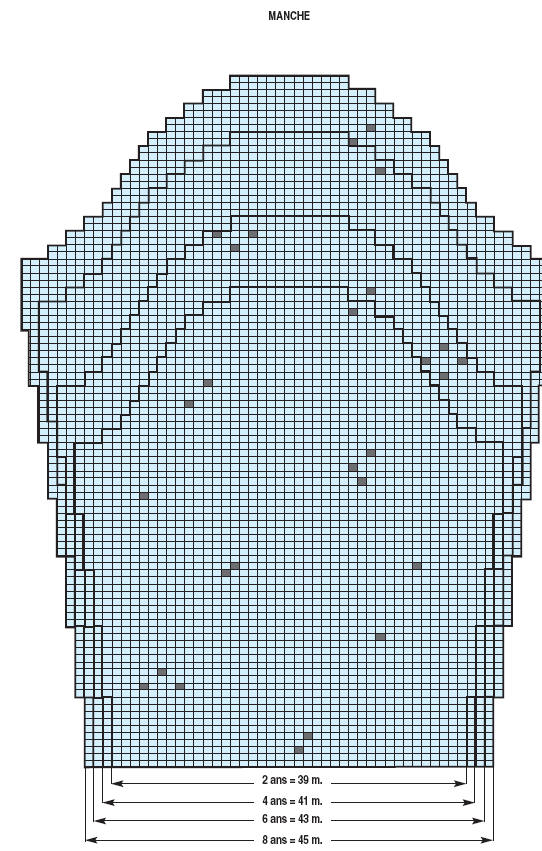 6 ans : 4 fois 1 m. tous les 10 rgs, 2 fois 1 m. tous les 8 rgs.