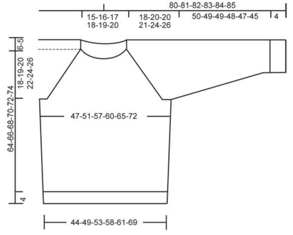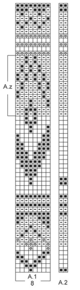 Quand A.1 a été tricoté jusqu'à A.z, ne pas tricoter la partie A.z sur les manches et continuer à partir du 1er rang après A.z. À 4 cm,