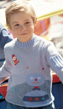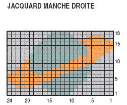 Mais à 10-12-14- 16 cm (32-38-44-50 rgs) de haut. tot., cont. jacquard sur les 24 m. centrales et jersey endr. Cendre sur les autres m.