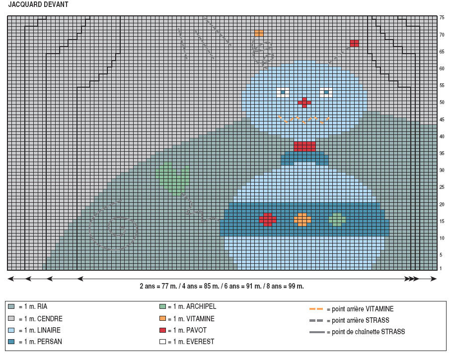 4 ans : 2 fois 1 m. tous les 8 rgs, 8 fois 1 m. tous les 6 rgs.