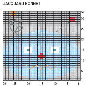 Prendre 1 peloton par motif et bien croiser les fils à ch. changement de coloris.