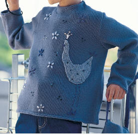 Coudre la poule sur le devant à 12-13-14-15 cm du bas et à 7 cm du bord droit.